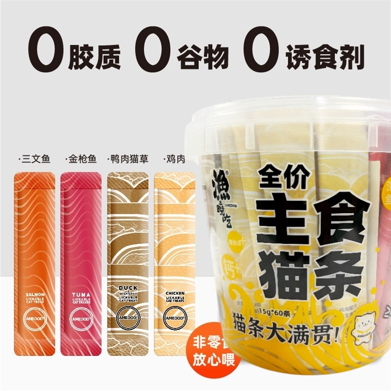猫咪超爱:“我家猫咪对渔晓吃的猫条完全没有抵抗力,每次一打开桶盖就迫不及待地跑过来!”