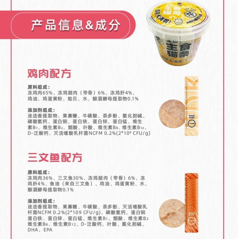 高肉含量:75%的含肉量,流质肉感,适口性极佳,猫咪爱不释口。