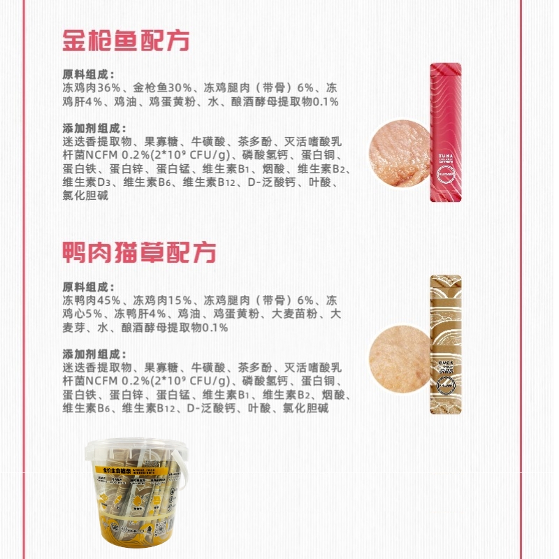 超值装量:900g桶装含60支猫条,满足猫咪长期零食需求,性价比超高!