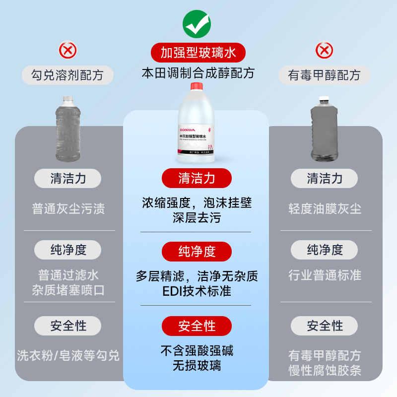 | 对比维度 | HONDA原厂加强型 | 普通玻璃水 |