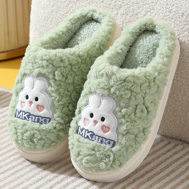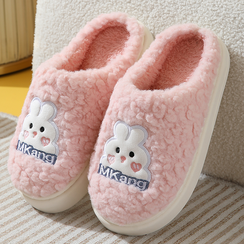 产品详情:刺绣小兔加绒情侣棉拖鞋——秋冬季的温暖萌趣之选