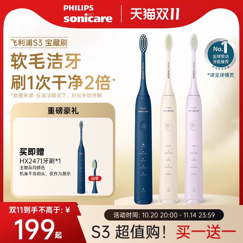 补帖到手32.6元【福派】电动牙刷1机+5刷头