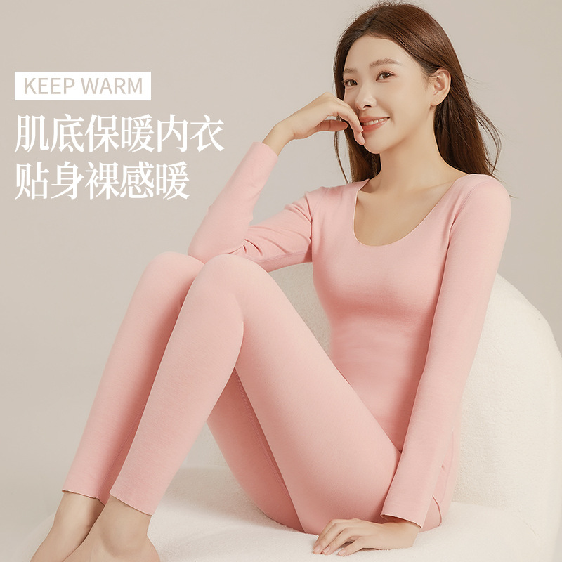 羊绒蚕丝保暖内衣套装2025新款秋冬女打底衫德绒秋衣秋裤二件套DN
