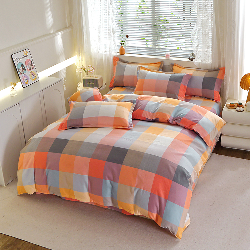 全棉被套纯棉磨毛秋冬床单四件套简约单双人被罩1.8宿舍床上用品