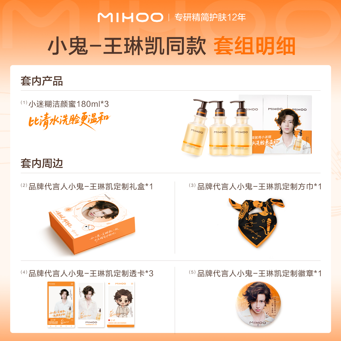 券后到手价96.5元!到手小鬼-王琳凯同款限定套组!内含小迷糊氨基酸洁颜蜜120ml*3!赠送限定透卡*3+定制方巾*1+徽章*1!