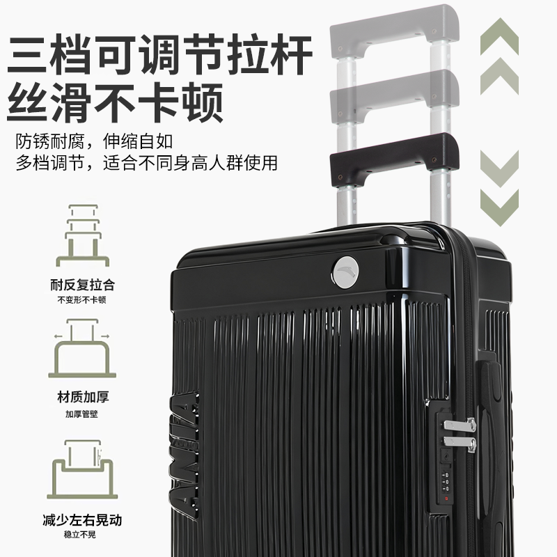 安踏25年新款拉杆箱可登机行李箱大容量三档可调节拉杆