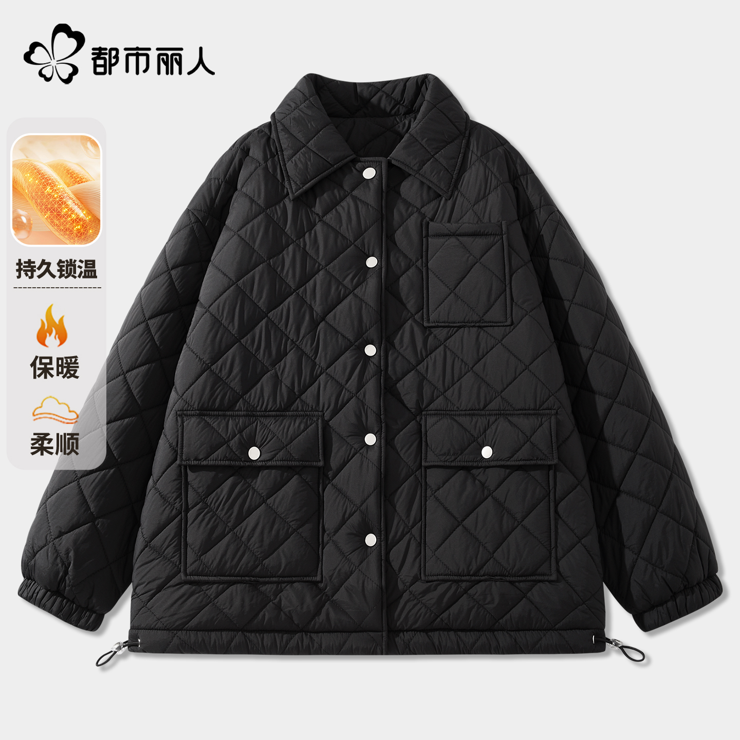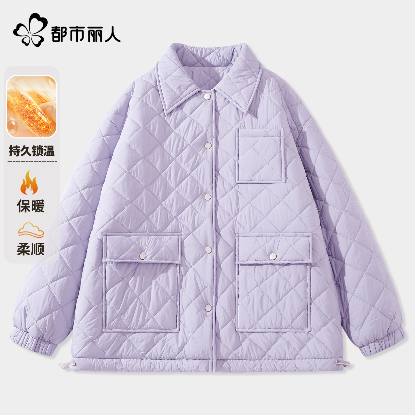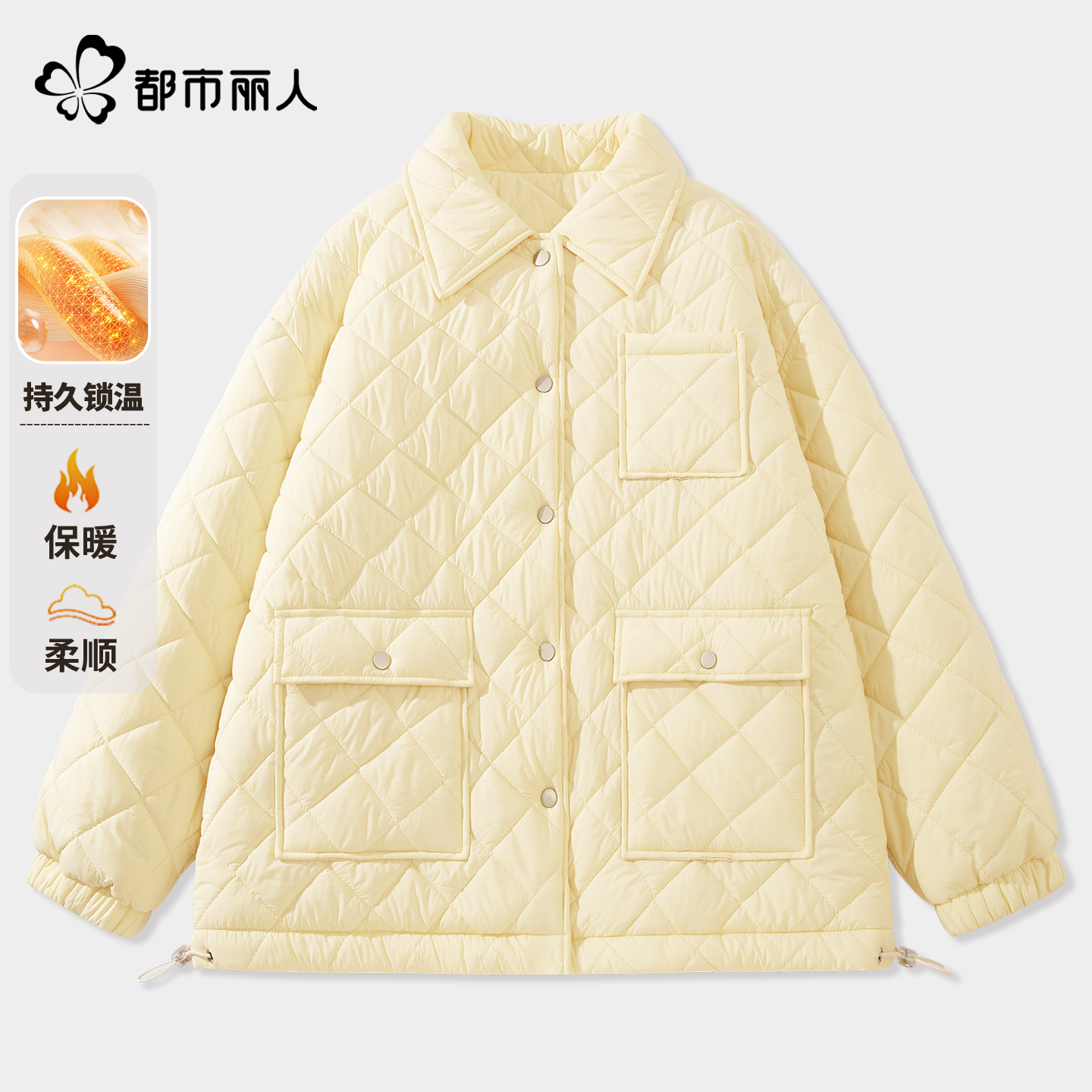 都市丽人白色棉服女款2025新款爆款大口袋夹棉外套棉袄轻薄棉衣A