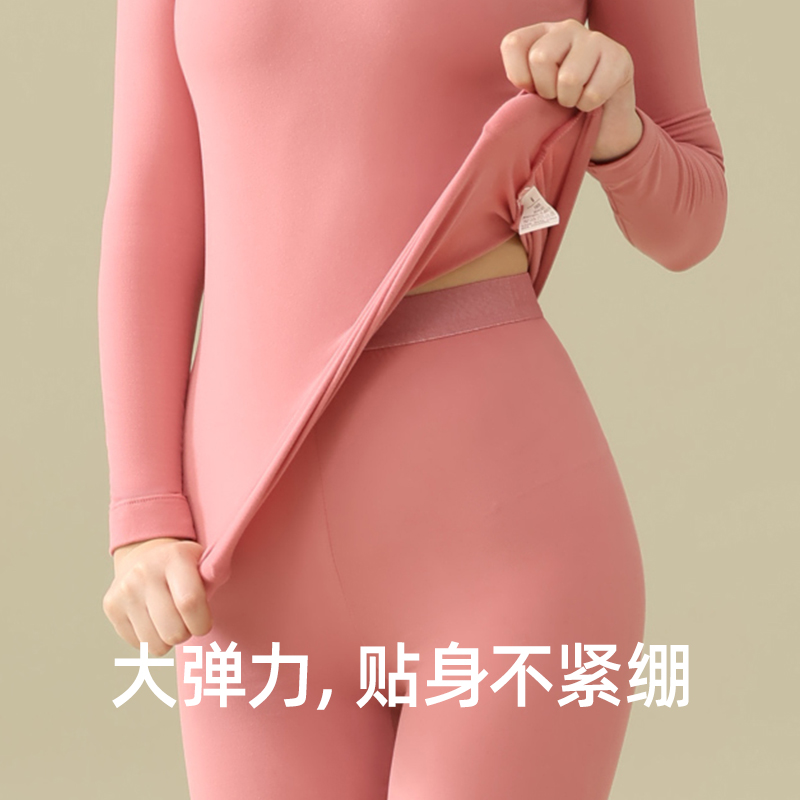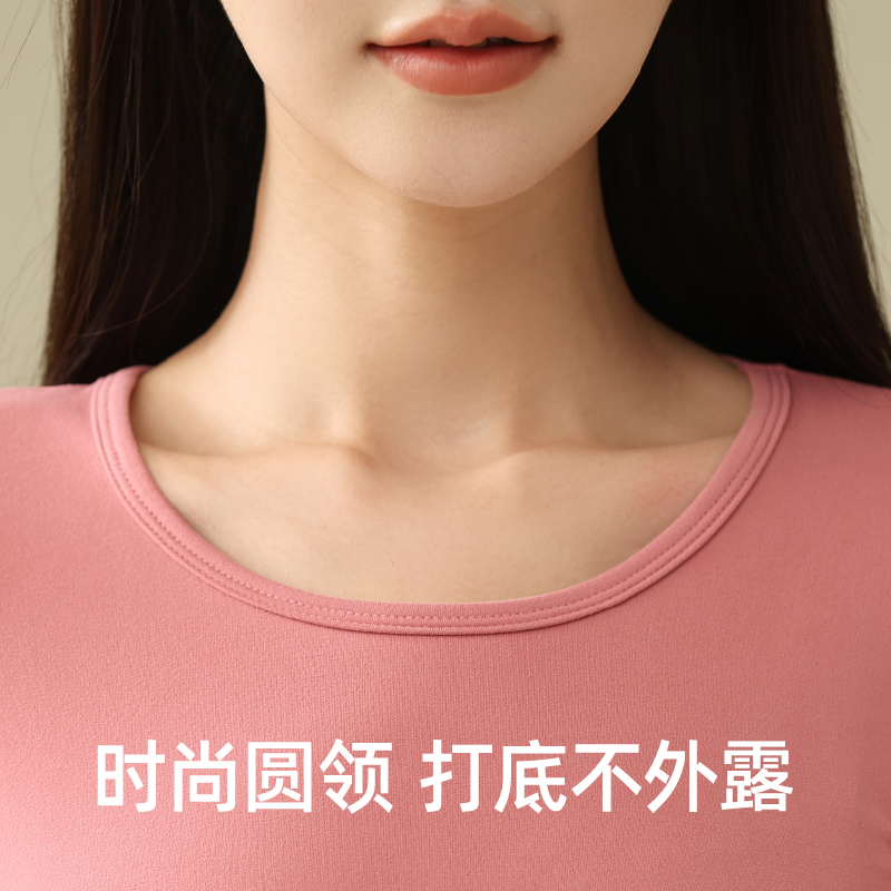 健丹鸟德绒保暖内衣女羊毛打底衫无痕加绒发热秋衣套装冬上衣内穿