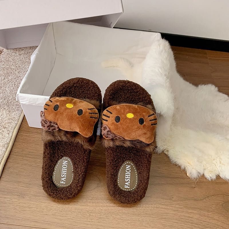 【卟卟松鼠】卡通KT猫加绒羊羔绒拖鞋