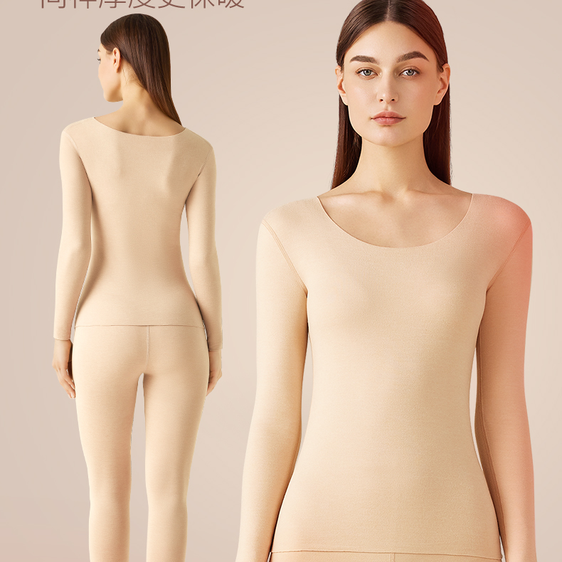 俞兆林德绒保暖内衣女无痕磨毛秋衣秋裤圆领