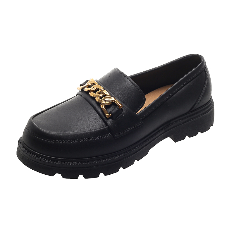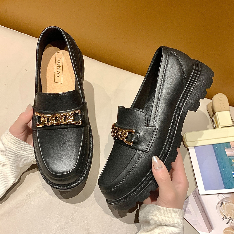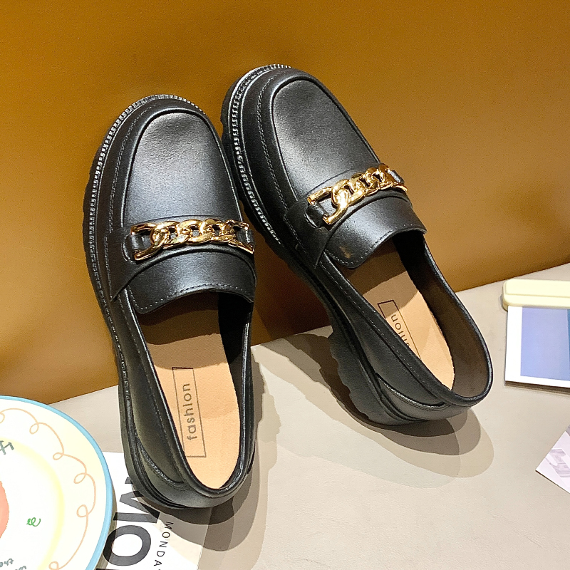 2025春秋单鞋女外穿时尚韩版简约百搭厚底金属塑料扣装饰防滑软底