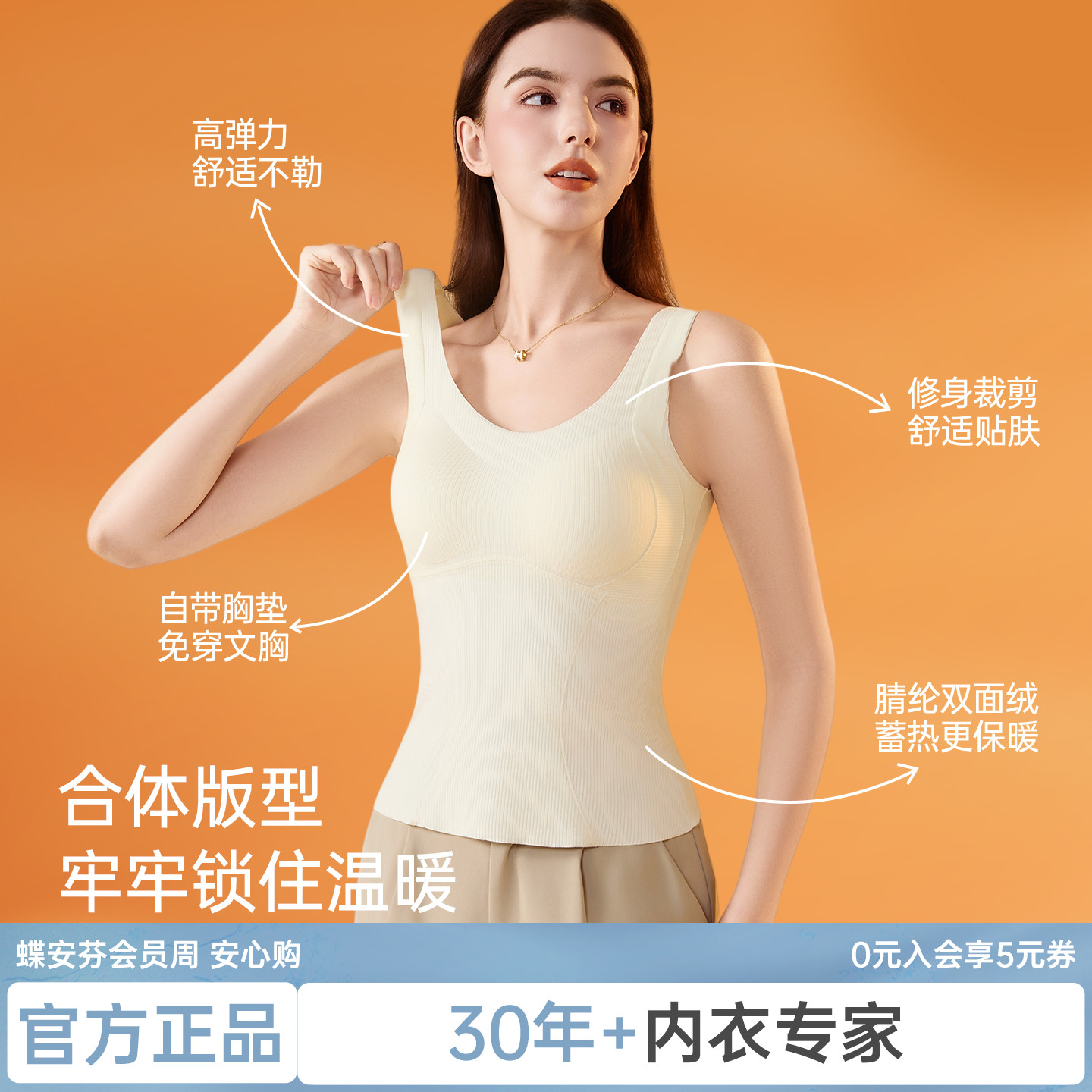 走淘金币会场加购1件,叠加1.8淘金币,官方立减7.3元,到手28.1元!蝶安芬带胸垫一体式保暖背心,双层磨绒,轻盈无束缚,24小时锁温,收副乳不外扩,网纱防走光,一件带你轻松入秋