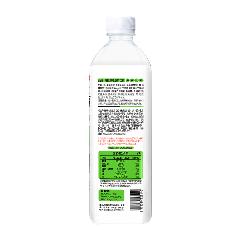 依能电解质水以科学配比为核心,每瓶含钠、钾、镁、钙四大电解质元素,精准模拟人体汗液流失比例,快速补充运动后流失的矿物质。搭配天然白桃浓缩汁(果汁含量≥5%),不添加人工香精,清甜果香与微咸电解质形成独特口感,0脂肪、0蔗糖,适合控糖人群。