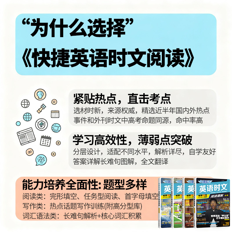 【淘金币抵扣10%,最终到手13.89】【可签到】2025新版29/28期活页快捷英语时文阅读,小学、小升初-高考,特、高级教师推荐!关注热点,选材新颖,全文翻译,有声朗读,精讲视频,答案详解,紧扣时事,训练有素,边练边学!时文,请认准快捷!~~~~