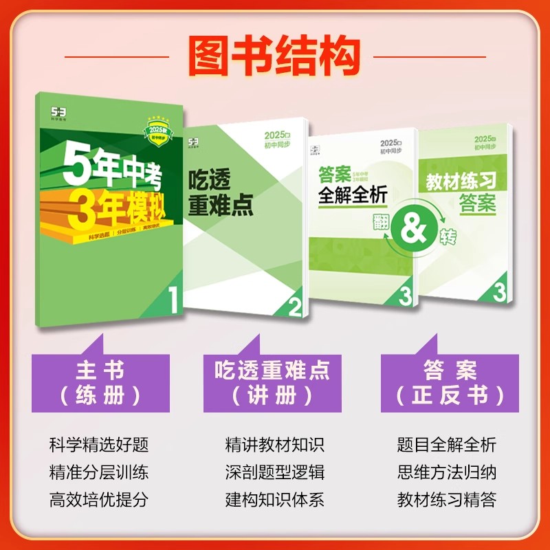 2025新版五年中考三年模拟同步练习册,专项突破,真券演练,权威预测,冲刺名校宝典各种考题难题必选,简单方便易懂,赢在起跑线,中考高分必备!