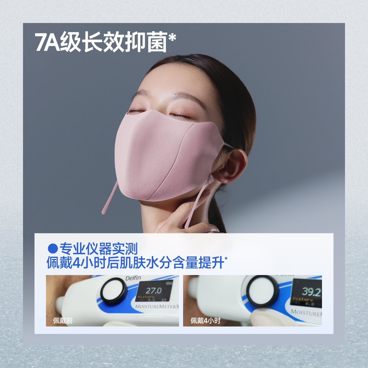 UPF50+高倍数防晒,防晒至眼角,可阻隔99%以上紫外线,冰丝清凉感系列,超轻薄防晒口罩,戴上无感脱下无痕,素颜也能美丽出街,立体挺括显脸小