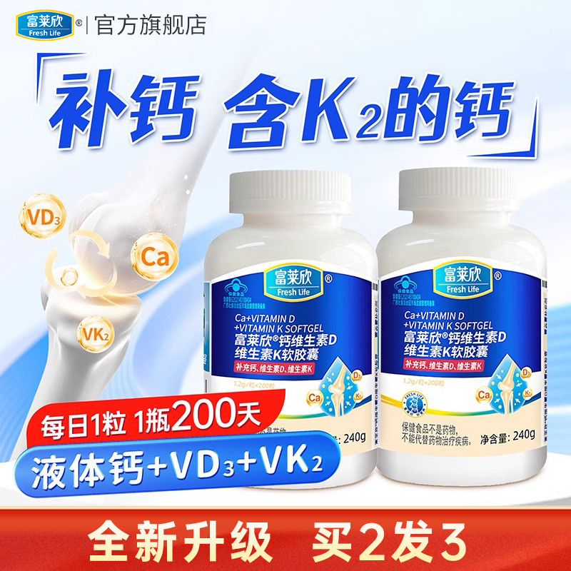 富莱欣液体钙维生素dK2软胶囊中老年补钙片成人d3女性官方旗舰店
