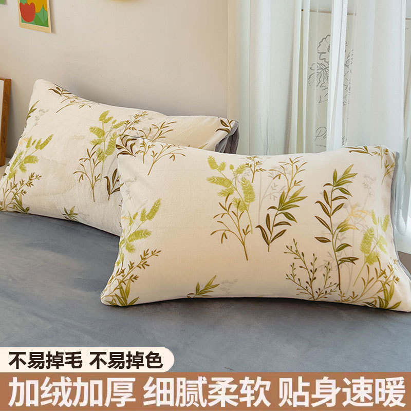 木林森牛奶绒枕套一对装秋季珊瑚绒枕巾单人枕头套48cmx74枕芯套
