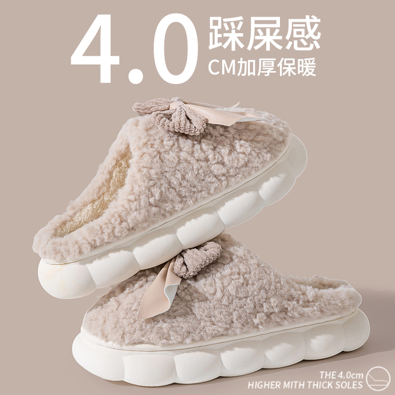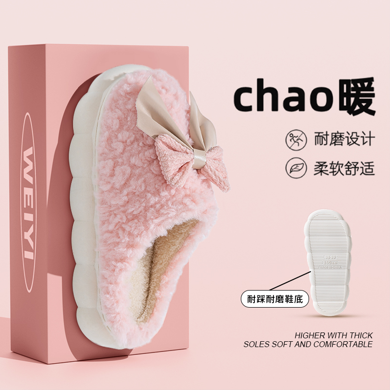 冬天居家男款蝴蝶结棉拖鞋冬季室内外穿毛绒保暖厚底踩屎感棉拖女