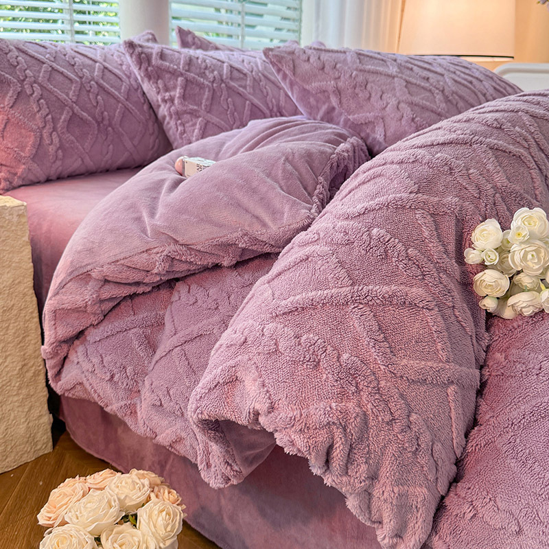 加厚牛奶绒四件套冬季保暖双面绒被套罩塔芙绒床加绒三件套床品