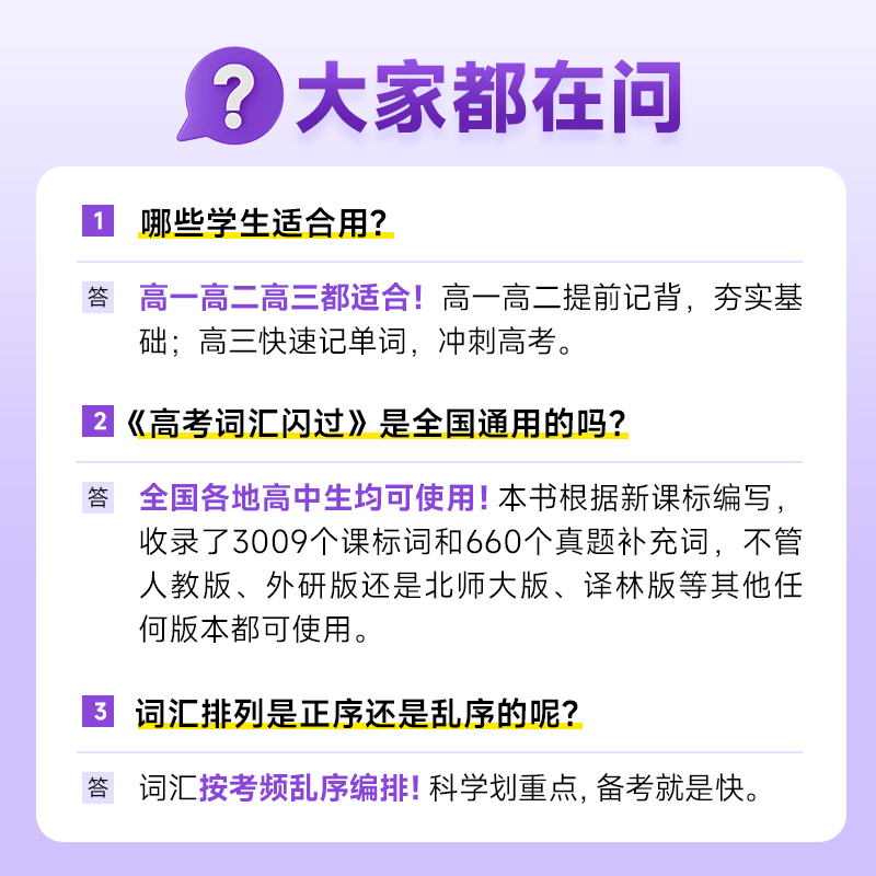 目标人群:高一到高三学生、新高考地区考生、英语基础薄弱需强化词汇者。