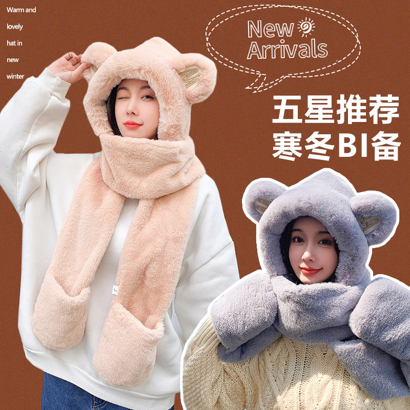 这款亲子防风帽专为秋冬寒潮设计,将可爱小熊造型与围巾+手套+帽子三合一功能完美融合,既能抵御-10℃严寒,又能成为亲子出行的吸睛神器。双层加厚兔毛内里(帽子/围巾/手套均采用),触感如云朵般柔软,360°包裹头颈手部,告别传统分体式保暖装备的臃肿感。