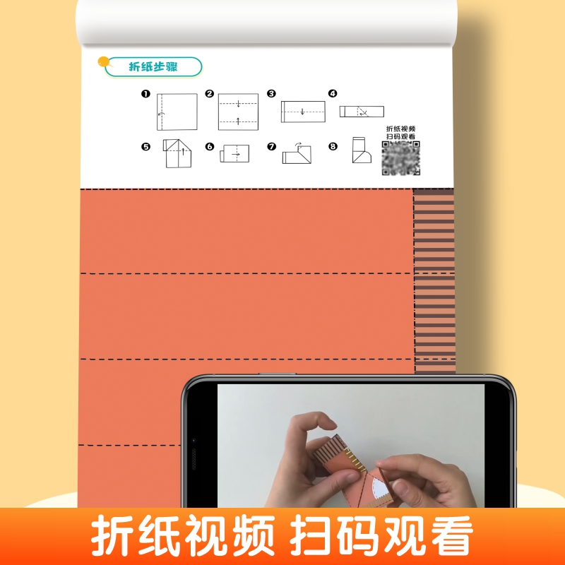 看教程:扫描书内二维码观看分步视频,或对照彩色图解一步步折叠。