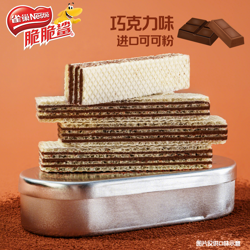 产品详情:雀巢脆脆鲨巧克力味无涂层夹心威化饼干