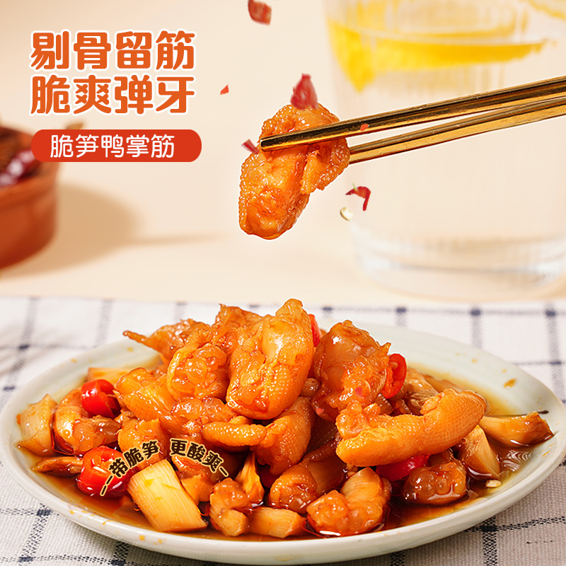 ✅ 脆笋风味,层次丰富:鸭掌搭配脆爽笋片,酸辣微甜,口感层层递进,解腻又过瘾!