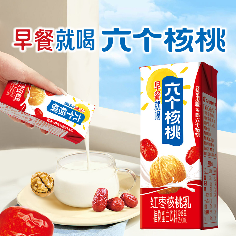 【六个核桃官方旗舰店】红枣核桃乳250ml×6盒 | 植物蛋白饮料整箱装 | 脑力补给新选择