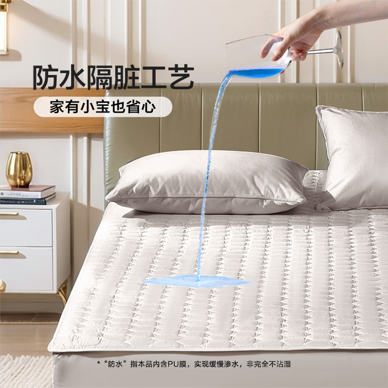 宝妈李女士:“孩子总在床上吃零食,以前床垫沾了果汁根本洗不掉,现在铺上护垫,脏了直接机洗,省心!”
