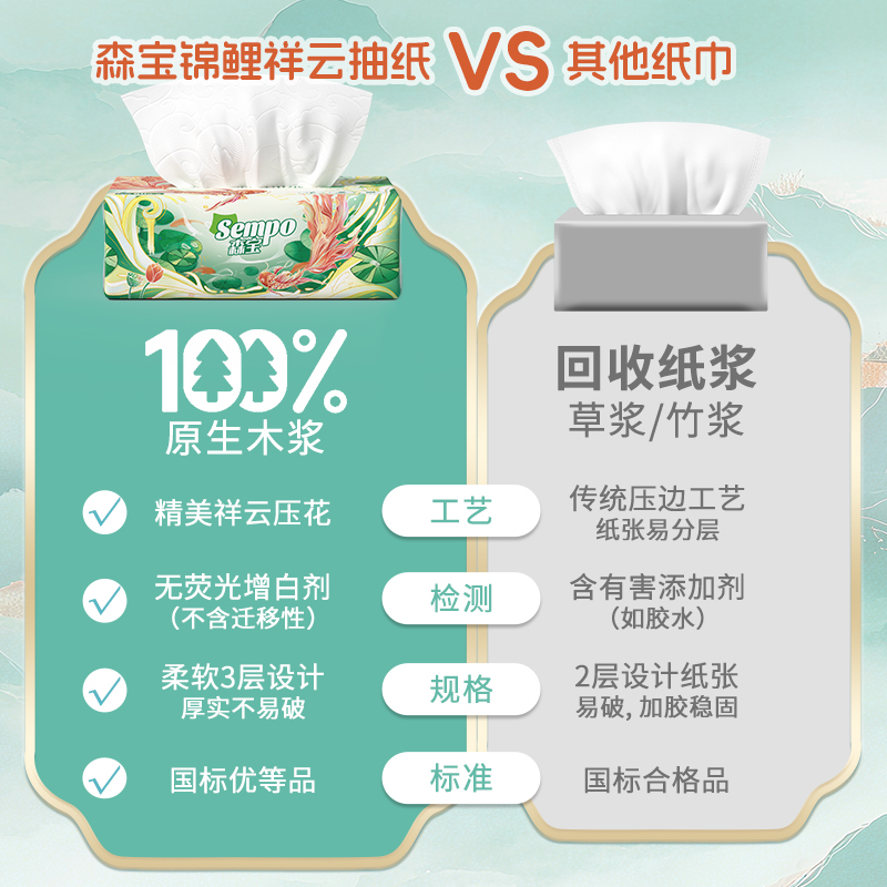 | 对比项 | 森宝锦鲤款 | 某风抽纸 | 某洁卷纸 |