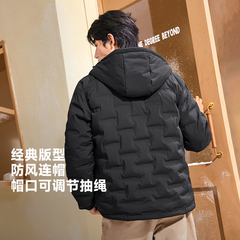 产品详情:361连帽加厚保暖短款净防羽绒服男