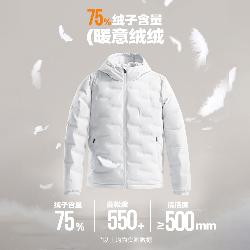 75%高绒子含量白鸭绒:精选优质鸭腹绒,蓬松度达650+,锁温力提升30%,轻盈不臃肿,-10℃低温仍保持舒适体感。