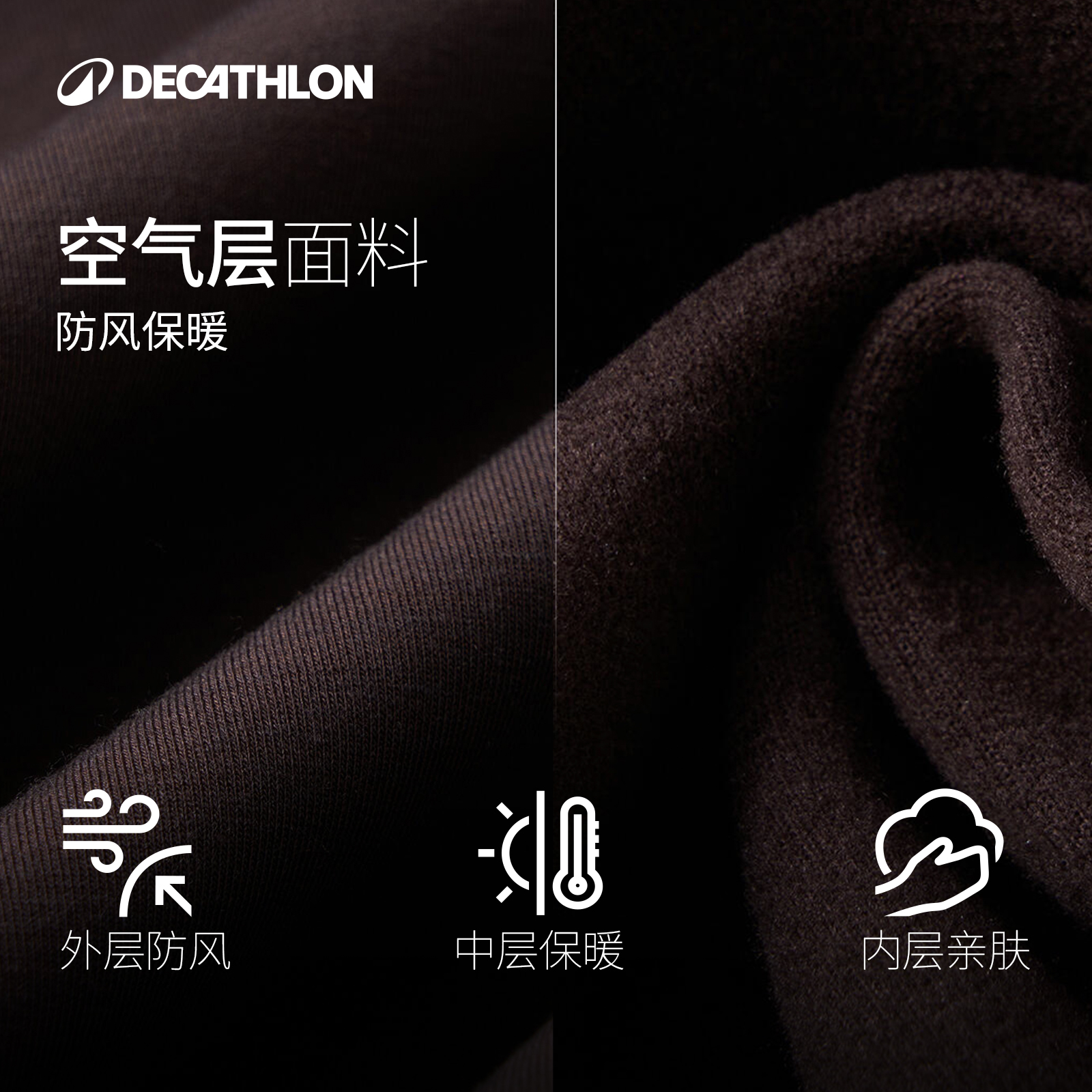 采用迪卡侬专利3D空气层面料,外层防风抗皱,内层抓绒锁温,中间空气层形成天然隔热屏障,-5℃至10℃环境均能保持体感恒温。实测重量仅320g(M码),比传统摇粒绒外套轻30%,运动时无拖拽感,日常通勤叠穿也不臃肿。