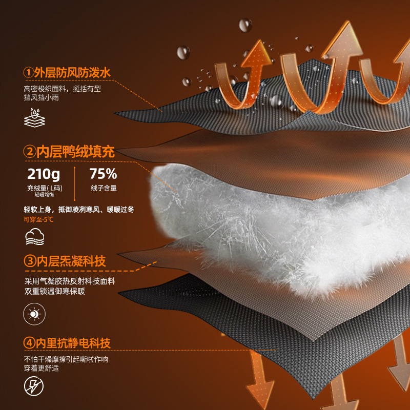 • 90%白鸭绒填充:蓬松度650+,保暖性远超普通羽绒服,-10℃低温下仍能锁住体温,告别“里三层外三层”的臃肿感。