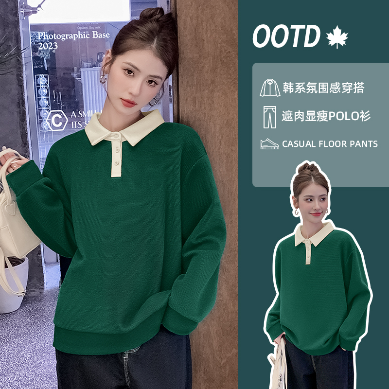 产品详情:都市丽人撞色Polo领女士卫衣(2025春秋新款)