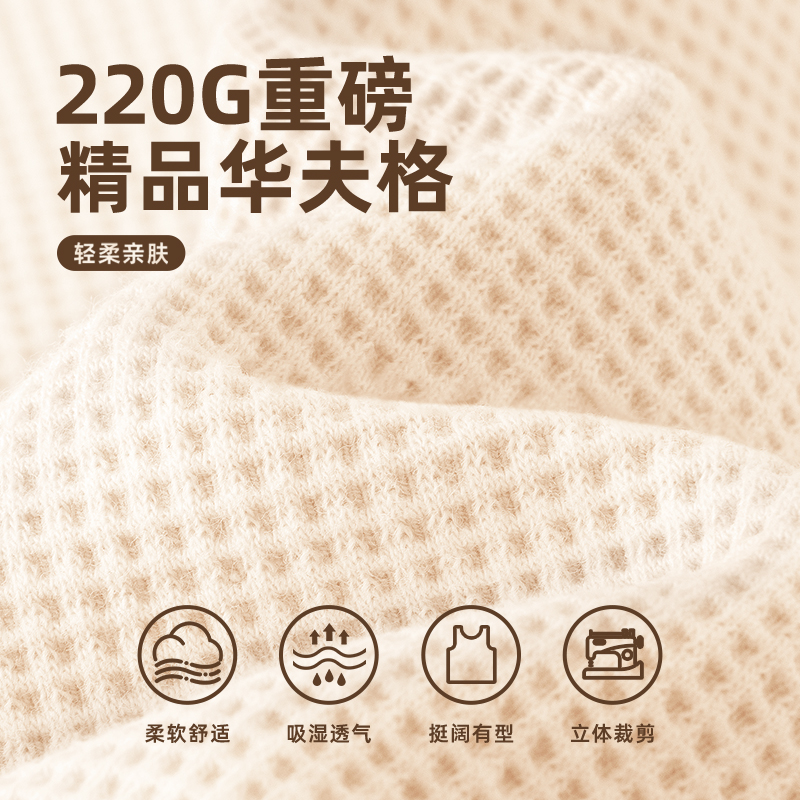 洗涤建议:反面机洗+中性洗涤剂,避免暴晒,华夫格面料需平铺晾干防止变形。