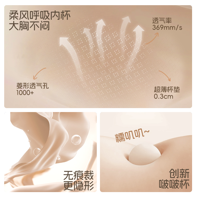 • 柔风呼吸内杯:采用3D蜂窝网眼结构,透气性提升300%,告别夏日闷热黏腻。