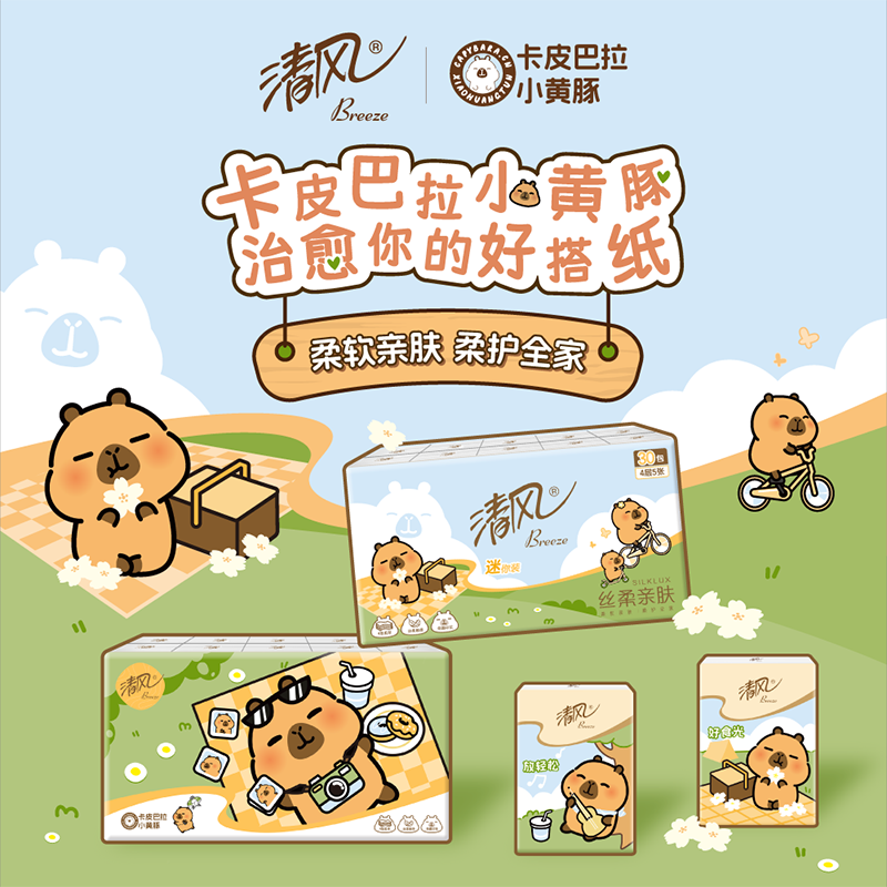 清风卡皮巴拉手帕纸,纸巾小包便携式餐巾纸卫生纸面巾纸