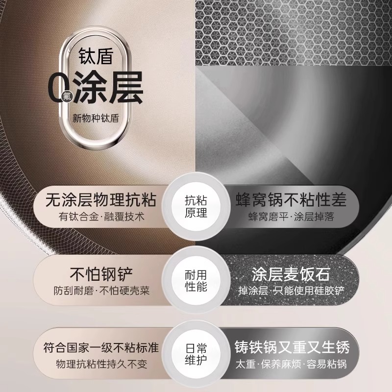常见误区:钛锅≠完全不粘,需配合控温技巧;避免用金属铲猛力刮擦。